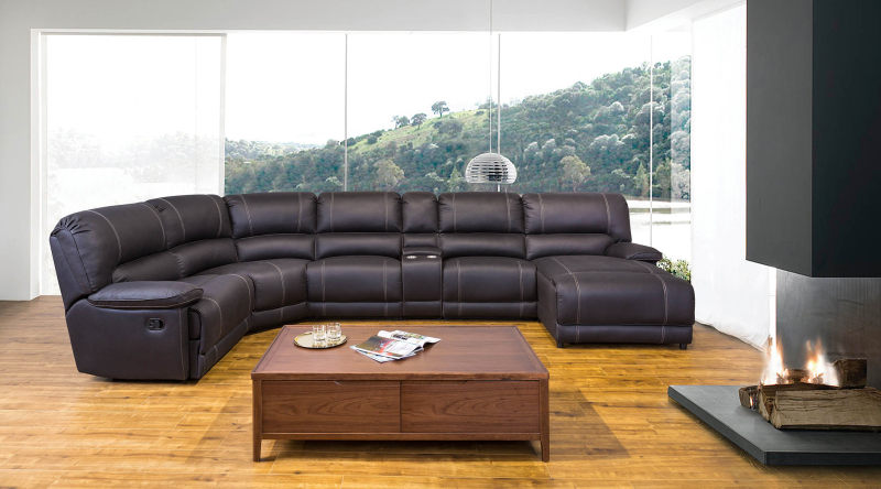 This is splendid sectional perfect for families and friends. Contrasting baseball stitching comes with stylish appeal, leather-look but better air permeable fabric upholstery, plum and pillowy cushions merge comfort and support, ultra-wide seats provide easy and cozy seating arrangement. Except reclining seats, the chaise even has adjustable back for perfect lying down experience.